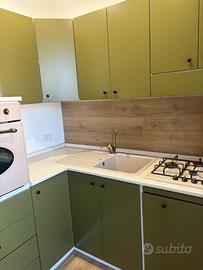 Piccola cucina angolare compresa di tutti glj elettrodomestici, forno, piano cottura e lavastoviglie