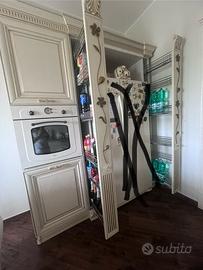 Cucina marca Lube colore effetto legno beige e inserti dorati compresa di lavastoviglie, piano induzione e forno