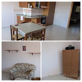 In regalo un divanetto 2 posti con rete integrata insieme a un piccolo mobiletto.