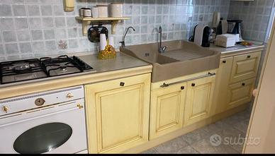 OCCASIONE: Cucina Berloni con forno Smeg e lavabo in pietra cm 445, armadio e vetrina coordinato.