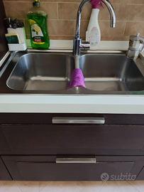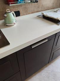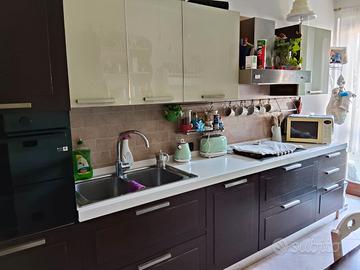 Vendo per ristrutturazione cucina Berloni come da foto lineare 4 metri e 20 colore delle ante rovere moro opaco, pensili colore verde chiaro in vetro di facile pulizia con profili in alluminio. Top in quarzo color bianco. Colonna frigo ad incasso e colonna forno. La colonna frigo è stata adattata a dispensa ma può essere riconvertita per rimettere un frigo ad incasso. Compresa di piano a gas Smeg con cappa Smeg. Lavello con due vasche. No frigo, no lavastoviglie, no forno, Smontaggio e trasporto a carico dell' acquirente DISPONIBILE DAL 1 GIUGNO AL 7 GIUGNO. Tenuta bene. Piano top non macchiato ( piccoli graffi). Prezzo trattabile.