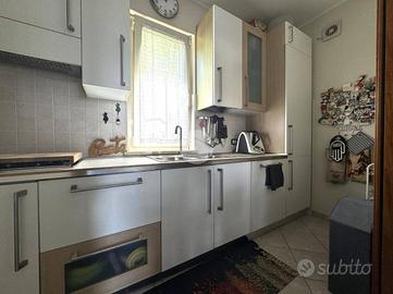 Causa trasloco, vendo cucina Aran in buono stato. La cucina è disposta su due pareti per un totale circa4 metri. Ante bianche con finitura simil legno e alcune ante in vetro bianco opaco con cornice rovere sbiancato. Sostituendo il top, la cucina può essere facilmente adattata su altre configurazioni. Gli elettrodomestici inclusi sono: piano cottura, cappa aspirante, lavello e rubinetto, frigorifero. Lavastoviglie e forno non inclusi.