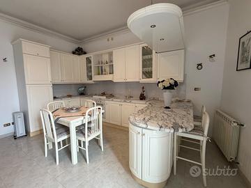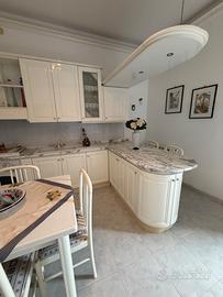 Vendesi cucina con ampio piano colazione e copertura in marmo di Carrara, comprensiva di tavolo con quattro sedie e divano tre posti