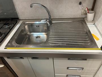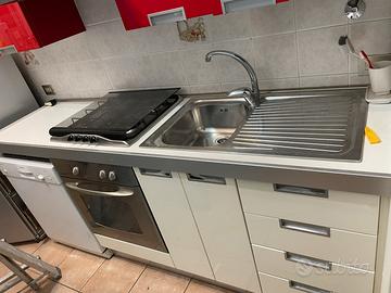 Vendesi cucina laminato bianco profili argento, quattro cassetti, forno e piano cottura, copertura con spazio per altro elettrodomestico ad incasso