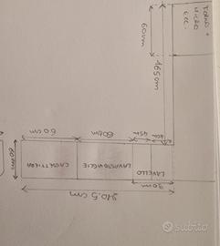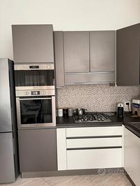 La cucina si presenta in buone condizioni, molto spaziosa e funzionale. Presenti soltanto un leggerissimo rigonfiamento nel mobile sopra la cappa e due graffi (foto disponibili su richiesta).