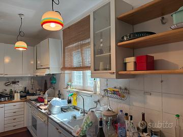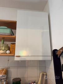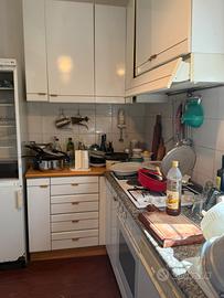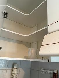 Si vende cucina con 8 pensili e isola tutta in legno massello color miele e bianca. Dimensioni lunghezza m.3.20. Isola lunga 1.70. Pensili alti cm.90 e profondi cm.35. Anche elementi angolari sia per pensile alto che basso. Intarsi x lavandino in marmo.