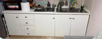 Vendo cucina completa di lavandino, piano cottura cappa e frigo. Lunga circa due metri. Da smontare.