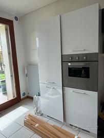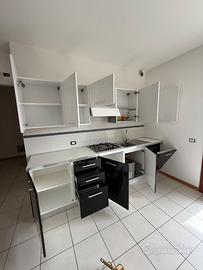 Cucina moderna e funzionale, in ottime condizioni, color bianco e nero lucido con rifiniture acciaio.