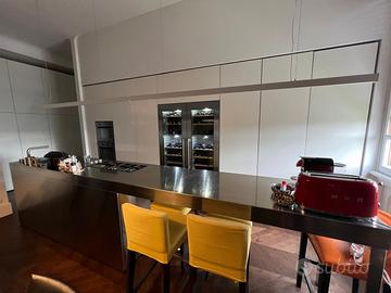 Cucina Boffi completa dí bancone in acciaio con tripla cassettiera + lavastoviglie.
