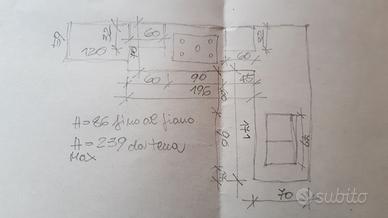 Cucina componibile,con frigo,piano cottura a gas,forno elettrico, lavastoviglie ,piano di lavoro prof. 70cm