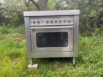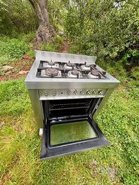 Vendo: piano cottura in acciaio inox in buone condizioni, marca Bosch Solitaire. Il piano cottura funziona a gas, il forno è elettrico. Tutto perfettamente funzionante. Dimensioni: Altezza 85 cm (regolabile), larghezza 90 cm, profondità 60 cm. 6 fuochi.