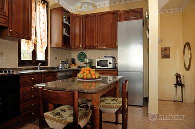 CUCINA IN LEGNO COMPLETA DI ELETTRODOMESTICI (FRIGO-FORNO-LAVASTOVIGLIE-PIANO COTTURA A INDUZIONE-LAVELLO IN ACCIAIO -CAPPA E SCOLAPIATTI) TOP E RIPIANO TAVOLO IN GRANITO, QUATTRO SEDIE IN SEDUTA PAGLIA. SMONTAGGIO E RITIRO A CARICO ACQUIRENTE.