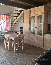 Vendo cucina in legno angolare completa di Forno, piano cottura e frigorifero, più tavolo e sedie .. la cucina è in buono stato basta migliorarla con maniglie nuove e volendo una tinteggiata