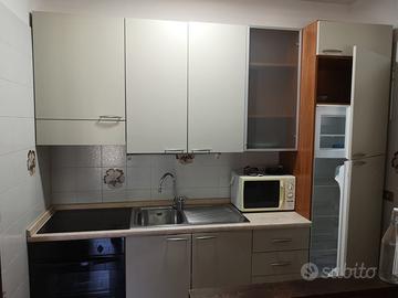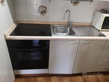 Cucina di 2,6 metri, composta da: - Frigorifer + freezer integrati - Lavandino con gocciolatoio in acciaio + scolapiatti nel pensile - Piano cottura a induzione + cappa (a filtri, senza tubo) - Forno a incasso - Mini lavastoviglie