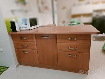 - penisola con 4 cassetti, due cassettoni e uno scompartimento a due ripiani chiuso da un'anta a battente. Completa la penisola un pannello con faretti posizionato al di sopra.