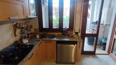 Vendo cucina con piano cottura Bompani e lavello doppia vasca in acciaio inox (esclusa lavastoviglie e forno) come da immagini, unitamente a tavolo con 4 sedie e pensile dispensa con anta in vetro opaco. La cucina è smontata e deve essere ritirata presso il mio domicilio. La cucina è in discrete condizioni!