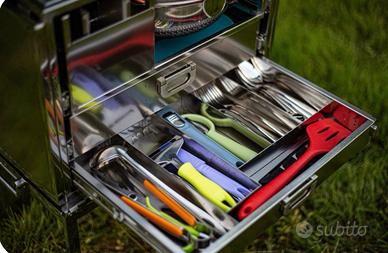 splendida cucina da campeggio completa di pentole 2fornelli piatti posate MAI USATA lascio causa cambio progetto