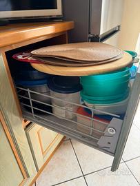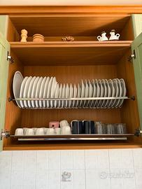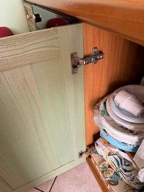 Vendo cucina fatta a mano da falegname come da foto, escluso forno e frigorifero, lunga 3 metri e mezzo + 30cm mensola laterale. Alta 2,40 m.
