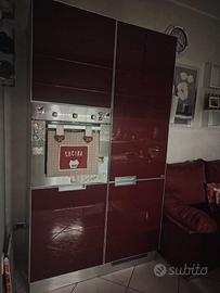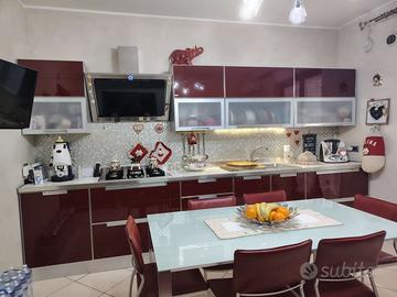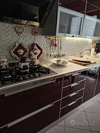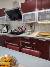Vendesi cucina usata Scavolini moderna ed elegante 3.90 mt, compresa di piano cottura Candy, lavabo, tavolo in vetro allungabile con 6 sedie in pelle Bordeaux , prezzo €3000 trattabili (comprende anche colonna frigo funzionante e forno da rivedere ) allego foto
