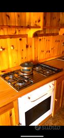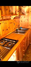 Cucina composta da trezer-frigor-SPAZIO per tuochi, presente forno, vano porta bombola, 4 cassetti per posate e accessori e sottolineo SPAZIO per il lavandino armadio a 2 ante.