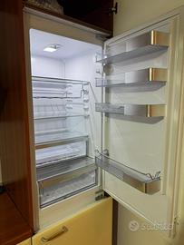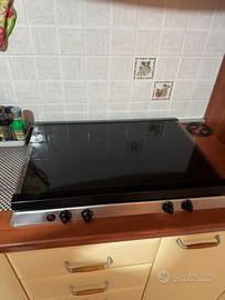 Vendo cucina a L classica con ante color crema in legno ben tenuta piano cottura elettrico, cappa grande a vista, frigorifero integrato