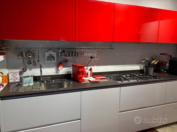Cucina marca MODULNOVA con ripiano in PORFIDO sedie marca BONTEMPI TAVOLO di CRISTALLO ,FORNO marca SMEG e frigorifero modello americano della SAMSUNG