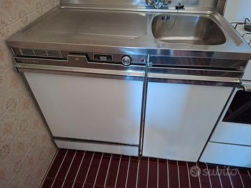 Vendo cucina completa come in foto, dotata di cappa, lavastoviglie indesit modello anni 60 perfettamente funzionante e tenuta maniacalmente, cucina 4 fuochi bompani con forno a gas, usata pochissimo, senza graffi o macchie, perfettamente funzionante. Non ci sono punti di usura/ruggine da nessuna parte. Vendo a 250 euro . Vendo eventualmente anche solo gli elettrodomestici. Da venire a ritirare