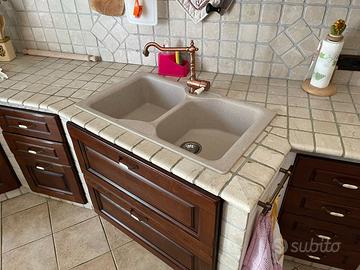 Vendo cucina in finta muratura fatta con marmo botticino su struttura il legno, anta e cassa completamente in legno nessuna parte in mdf, posdibilita di aggiungere tavolo e 6 sedie in kegni massello con l’aggiunta di 600€