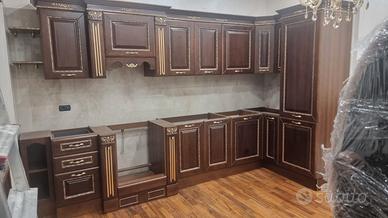 Vendo cucina classica legno noce con rifiniture oro. Tutta interamente di legno. Nuova mai usata solo montata. Pagata € 5.500 Vendo € 4.000