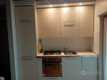 cucina color crema con elettrodomestici come da foto , ottime condizioni , lunghezza 2,40 mt composta da colonna frigo/congelatore 320 LT, forno con piano cottura 60 cm ,lavello singolo, lavastoviglie 45 cm , cappa a scomparsa