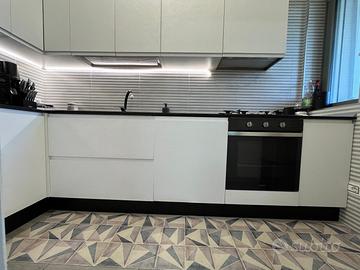 Vendo cucina completa in ottime condizioni, usata solo 3 anni per cambio casa. Completa di forno, piano cottura e lavastoviglie. 7 ante e 2 ante angolari, 2 cassettoni. Angolo sinistro. Smontaggio e trasporto a cura dell'acquirente.
