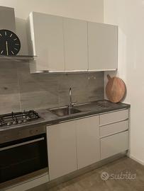 Trattasi di cucina composta da capiente penisola, forno e fornelli, lavabo e ulteriore piano di appoggio da 60 cm, pensile dispensa, pensile per asciugare i piatti e cappa. Raramente utilizzata, come nuova. Disponibile a spedizione e montaggio per acquirenti della zona (Fermo - Pedaso - Civitanova Marche).