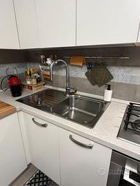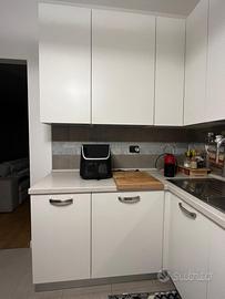 Vendo cucina per rinnovo arredo. Disponibile da fine novembre 2025. Forme e colori come da foto. Dimensioni: lato corto 170 cm, lato lungo 250 cm, altezza 89 cm, profondità 60 cm. Pensili sospesi: altezza 100 cm, profondità 35 cm Elettrodomestici inclusi: piano gas, forno e frigo a libera installazione (dimensioni: 187 cm altezza e 60 larghezza). No miscelatore.