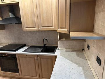 Cucina in frassino decappato corda, con frigorifero, congelatore, forno, lavastoviglie misura 420 cm