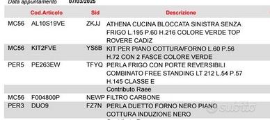 Vendesi cucina semi nuova per cambio casa compresa di forno e piano cottura ad induzione. Colore verde e top rovere.