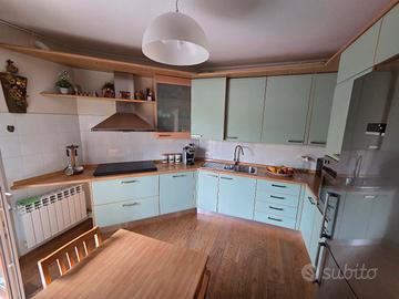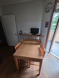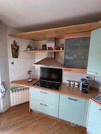 Vendo cucina completa come da foto, in buone condizioni, con: frigorifero, piano cottura, forno integrato e piccolo TV da cucina. Inclusi anche tavolo allungabile e 4 sedie (impagliate recentemente a nuovo). Prezzi: Tutto completo: 1800 € Solo frigo: 500 € Cucina senza frigo: 1.300 € Prezzo poco trattabile. Contattare solo se interessati.