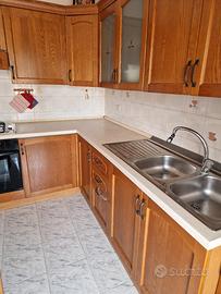 Vendo cucina legno rovere, completa di elettrodomestici perfettamente funzionanti, forno Ariston, piano cottura, cappa, frigorifero e freezer Indesit incassati, lavandino inox con miscelatore. Come si evince dalle foto la cucina ha i suoi anni ma è in ottimo stato e soprattutto in legno rovere che è molto resistente, non presenta deformazioni, cassetti e ante sempre tenuti in ottime condizioni, le cerniere sono tutte perfettamente funzionanti. Si preferisce lo smontaggio e ritiro a cura del cliente, ovviamente non posso mettere la spunta su "vendi a distanza" ma ci possiamo accordare con lo smontaggio e/o rimontaggio da una ditta di traslochi senza nessun problema. A disposizione per ulteriori dettagli o foto di chi veramente interessato. Prezzo leggermente trattabile.