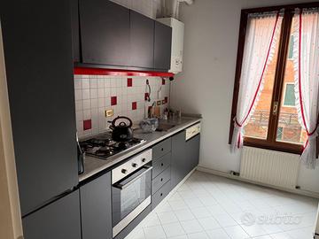Vendo cucina completa Arc Linea, moderna ed elegante, colore grigio antracite con dettaglio rosso.