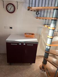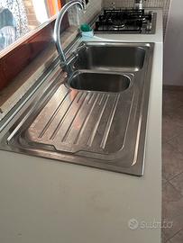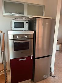 Cucina completa di accessori, sportelli alti e bassi poi mobiletto esterno piano di appoggio, con forno a colonna, lavastoviglie, frigorifero, cappa aspirante design marca Elica, ottime condizioni