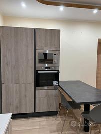 - Colonna lungh. 1.40m comprendente frigorifero con congelatore ad incasso dimensioni XL Whirpool 6 senso, forno e microonde ad incasso Hotpoint; e tavolo a muro con 4 sedie.