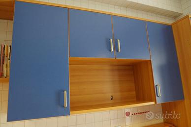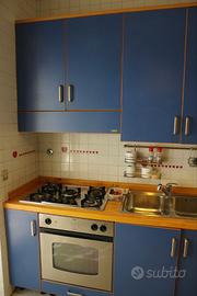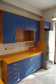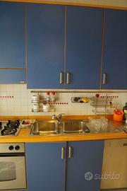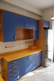Cucina completa in ottimo stato. Comprende forno, lavastoviglie e frigorifero. Smontaggio e trasporto a carico dell'acquirente. PARETE CON FRIGORIFERO: MOBILE:: L=180cm ; P=60cm; H=89 cm Cassettiera 3+1 cassetti L=45 cm 3 x 14 cm altezza 1 x 28 cm altezza Mobiletto 2 ante L=90cm cassettiera 1+2 cassetti 1 x14 cm altezza 2 x 28 cm altezza PENSILI: L=180 cm; P=37 cm; H=95cm anta sx + anta dx L=45 cm ante centrali L=90 cm; H=48 cm VANO FRIGO: L=64,5 cm; P=60 cm; H=238 cm Sportello alto H=35 cm Frigorifero WHIRPOOL (A+) H=188 PARETE CON FORNELLI: totale L=246cm da sx: mobiletto: L=30 cm fornelli con 5 fuochi zanussi forno L=90; H= 91cm vano sottostante il forno H=12 cm (cassetto) Lavello 2 vasche L=115cm sottolavello L=90 cm sportelli LAVASTOVIGLIE SIEMENS FREESTYLE L= 90 cm PENSILI: cappa+sportelli sopra L=90cm; H=91 cm pensile 2 ante L=90cm con scolapiatti pensile 1 anta L=60cm