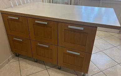 Vendesi cucina completa moderna con isola in ottime condizioni. La cucina è composta da ampia isola centrale con n. 6 cassettoni scorrevoli, lavastoviglie perfettamente funzionante, colonna forno, piano cottura e frigorifero a doppia anta. Solo la cappa richiede manutenzione. Tutti gli altri elementi sono stati ben mantenuti e si presentano in ottime condizioni pronti per essere utilizzati.