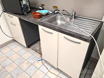 CUCINA COMPLETA DA CASA USATA Cucina completa da casa usata, si tratta di una cucina completa di: dispense, frigorifero, zona lavaggio con rubinetteria, microonde di marca Smeg mod. FMI020X funzionante a 230v e tavolo, vedere foto; dimensioni ingombro stimate: 404X60cm h227cm. Prezzo offerta € 1.200,00. Contatto: Giordano tel. 333 8921702 mail: rigiordy@yahoo.it