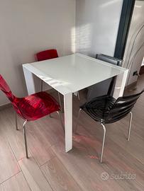 Comprende tavolo da 4 allungabile a 6 posti comprese 4 sedie di Design Callegari (grigie e rosse).