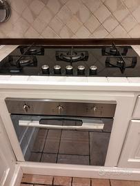 •Composizione: Basi e pensili spaziosi (lavello, piano cottura a gas con forno, cassetti e ripiani), cappa aspirante in acciaio,