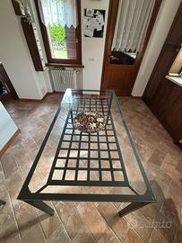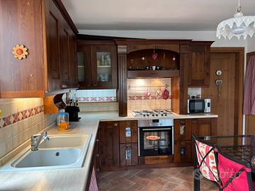 Vendo cucina con ante in legno massiccio in noce, completa di elettrodomestici frigorifero, freezer, lavastoviglie, gas con 6 fuochi, forno, forno microonde, tutti perfettamente finzionanti. A forma di L: lunghezza cm 400 e cm 253 (da muro a muro) profondità 60 cm. In aggiunta tavolo in ferro con piano in vetro misura cm 146 x 78 e 6 sedie La cucina è in buonissimo stato Smontaggio e trasporto a carico dell’acquirente. Cucina disponibile dal 1 maggio