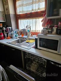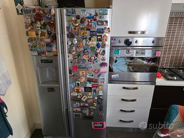 piano cottura 4 fuochi gas metano white westinghouse, forno elettrico ventilato smeg, lavastovigle 12 coperti smeg, microonde con grill samsung, frigorifero americano LG (perfettamente funzionante, frigo+freezer+dispenser e collegamento a impianto acqua).