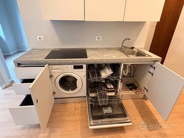 Vendo cucina completa di elettrodomestici, lavastoviglie e lavatrice Beko, frigorifero, forno da incasso e piano cottura a induzione Franke. Installata 4 anni fa e usata pochissimo. Dimensioni come riportate nella foto allegata.