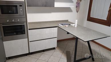 Come da oggetto, vendo causa trasloco, come nuova. Composta da 2 blocchi contrapposti ma comunque affiancabili. Colonna forno microonde+tradizionale. Cappa Faber+induzione. Lavello con rubinetteria speciale per erogazione acqua con depuratore Aqualife Gold slim sottoscocca (incluso). Smontaggio e rimontaggio a carico dell'acquirente. Possibilità di aggiungere anche frigorifero stand-alone.