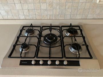 Cucina color crema in ottimo stato con ripiano in OKITE beige, doppio lavello anti graffio marca Franke, scolapiatti con anta basculante in vetro satinato, piano cottura 5 fuochi marca siemens, cappa in acciaio marca elica, forno e frigo.